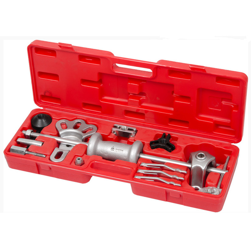Универсальный набор от компании-производителя МАСТАК пригодятся для демонтажа деталей авто с использованием обратного молотка. Набор поставляется в кейсе из пластика и включает боек, ось, а также кронштейны, съемники, болты и другие комплектующие. Все детали изготовлены из высокопрочных материалов, благодаря чему сохранят рабочий функционал надолго.