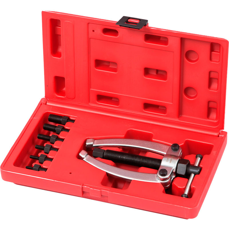 Съемник предназначен для снятия резьбовых втулок. Инструмент изготовлен из высокопрочной закаленной стали, устойчивой к деформации и нагрузкам. Имеет механический привод и возможность регулировки захвата по глубине. Широко применятся в профессиональной сфере – в мастерских, автосервисах и на станциях техобслуживания. В комплект также входит пластиковый кейс для хранения и резьбовые адаптеры.