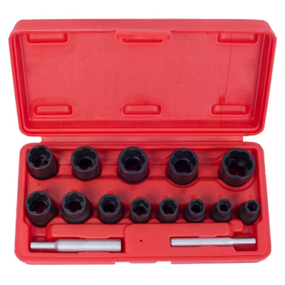 Набор торцевых головок размером 8-21 мм для проблемных гаек. Используется для разборки соединений со смещенными гранями. Обеспечивает надежный захват поврежденного болта или гайки. Инструменты изготовлены из высокопрочного молибденового сплава. Подходят для применения на СТО и в мастерских.