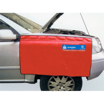 Накидка размером 800×600 мм с магнитными креплениями изготовлена из огнеупорного материала на основе ПВХ (лицевая сторона), который устойчив к растворителям и ГСМ, а так же плотной ткани на основе нейлона (внутренняя часть). Основная функция изделия - защита поверхности крыла автомобиля от внешних воздействий при выполнении ремонтных и диагностических работ, эксплуатируется на объектах автосервиса и в личных гаражах.