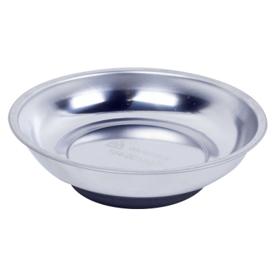 Магнитная тарелка диаметром 150 мм из нержавеющей стали с ферримагнетиком в защитном кожухе эксплуатируется в ремонтных мастерских, на производственных линиях, в промышленных цехах, на объектах автосервиса, а так же в личных гаражах. Предназначается для сбора и хранения металлических предметов небольшого и среднего размера (резьбовых крепежей, деталей, инструментов).