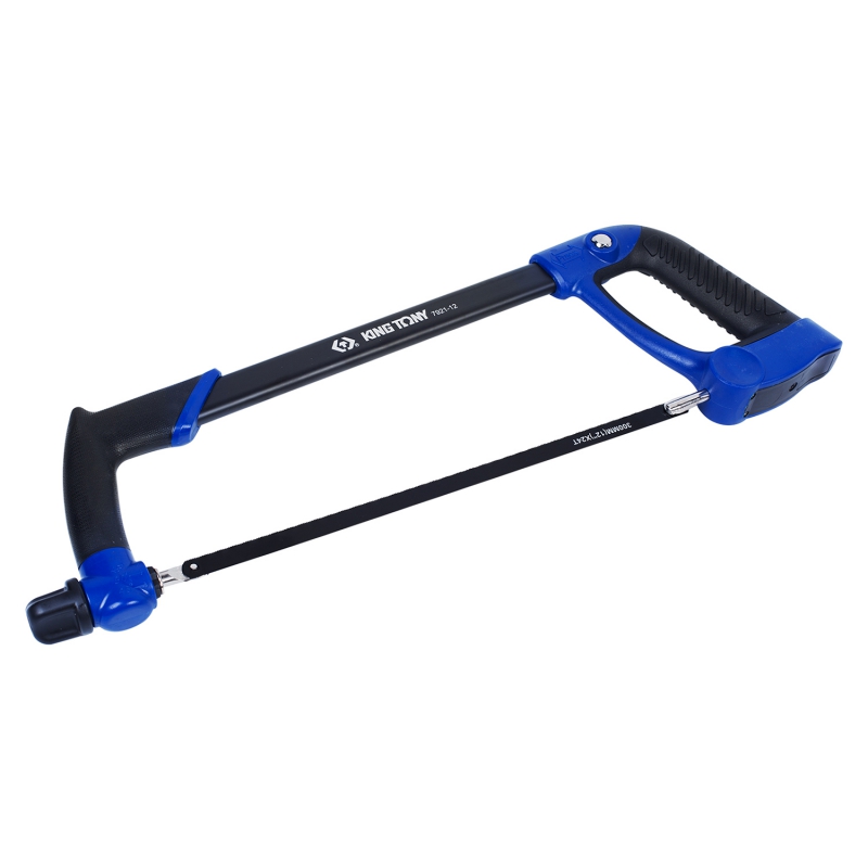Ножовку по металлу от популярного производителя King Tony можно использовать на производстве или во время гаражных работ. При работе с инструментом можно установить рабочее полотно под углом для более удобного использования. В верхней части ножовки предусмотрен отсек для полотен, что добавляет функциональность. Двухкомпонентная ручка не скользит в ладони и устойчива к воздействию масло- и бензиносодержащих жидкостей.