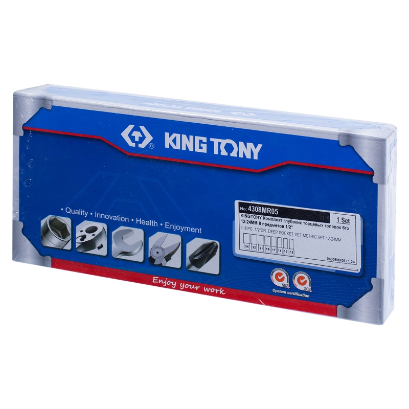 Набор глубоких торцевых головок 1/2, шестигранные, 12-24 мм, 8 предметов